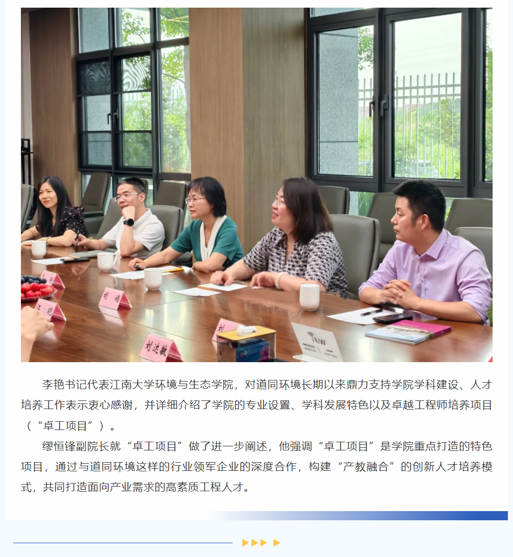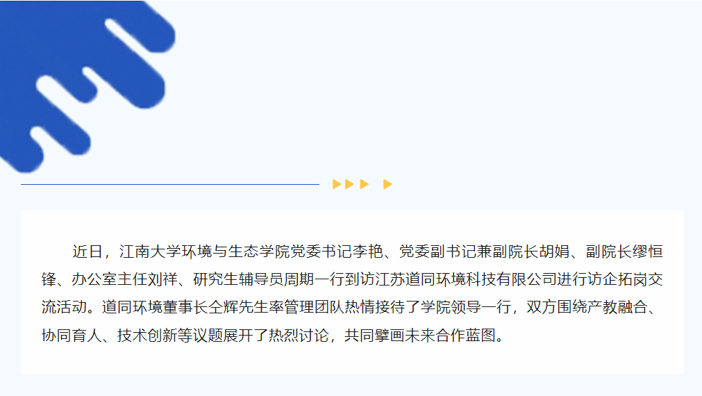 深化校企合作,共育綠色未來人才 | 江南大學環(huán)境與生態(tài)學院領導到訪道同環(huán)境,共繪產(chǎn)教融合新藍圖
